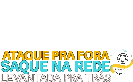 Animated sticker featuring the Portuguese phrase 'Pingo de Meio Sempre Cai!' (Middle drop always falls!) related to footvolley.