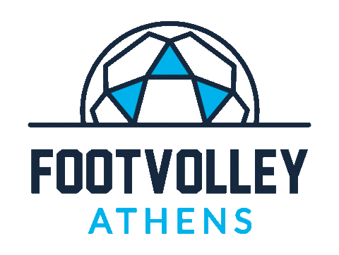 Stylized logo for Footvolley Athens, featuring a half-soccer ball design with 'FOOTVOLLEY' and 'ATHENS' text.