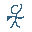 a pixel art drawing of a stick figure wearing a joker hat .