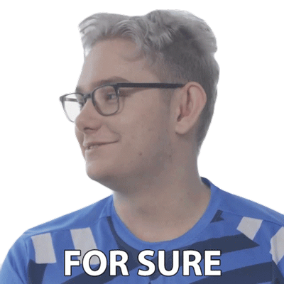 Kacper Sloma, a man in glasses and a blue shirt, confidently affirms 'For Sure' with a smile.