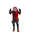 Fortnite's Jayraw animated in pixel art, performing a dynamic and recognizable dance.