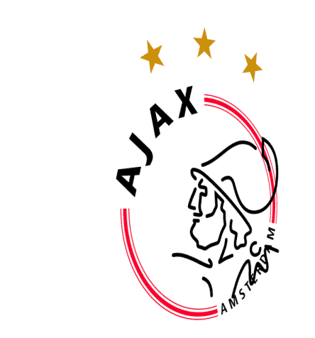 Animated sticker featuring the iconic Ajax Amsterdam football club logo with the profile of Ajax and three golden stars.