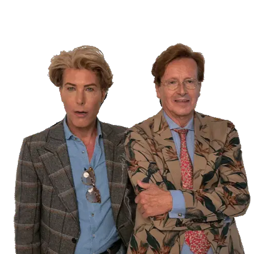 Frans Bauer smiles and gives a double thumbs up, showing approval and positivity with a friendly wink.