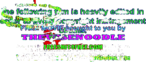 A heavily distorted and glitched disclaimer for a free movie, mentioning copyright and 'THEWISENOODLE'.