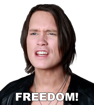 Pellek, the singer, passionately shouts "FREEDOM!" in this animated sticker, expressing strong emotions of liberation.