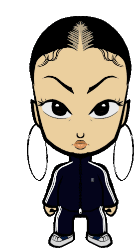 Freesis Mafia character, a girl with hoop earrings and tracksuit, blinks with a cool expression.