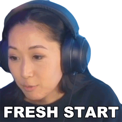 Mariko Takahashi, wearing headphones, reacts with a surprised expression to a 'Fresh Start', symbolizing new beginnings.