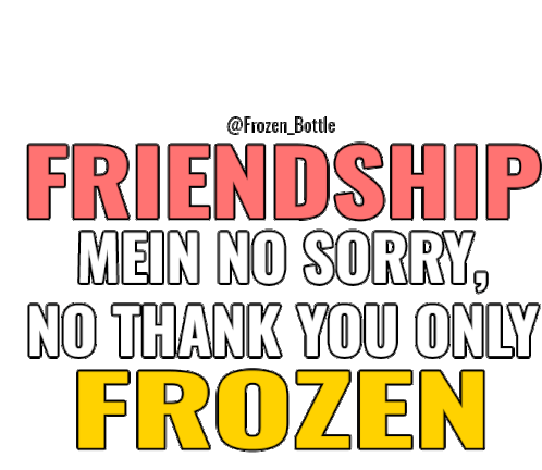 A vibrant sticker declaring the unwritten rules of friendship: no need for 'sorry' or 'thank you', just pure connection, like Frozen.