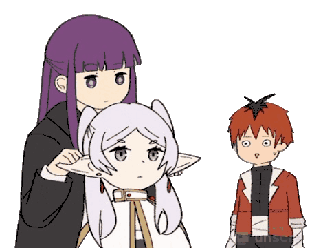 a cartoon of a girl cutting another girl 's hair while a boy looks on .
