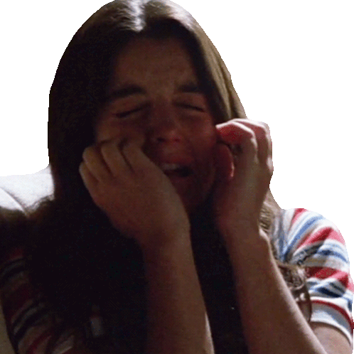 Dana Freeling, played by Dominique Dunne, screams in terror, hands clutching her face in a moment of extreme fright from Poltergeist.