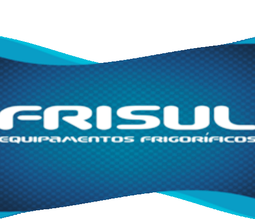 Animated sticker featuring the Frisul Equipamentos Frigoríficos logo, showcasing the company's brand in white text on a dynamic blue background.