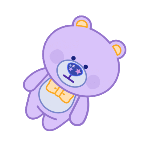 A cute purple bear crying heavily, floating in a pool of tears, expressing frustration and deep sadness.