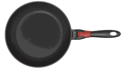 A frying pan changes color from blue to red, indicating it's heating up and ready for cooking.