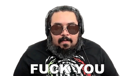 Agbin3r, a man with a beard, headphones, and sunglasses, makes a bold statement by saying 'Fuck You'.