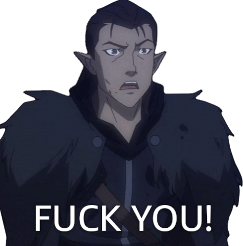 Vaxildan from The Legend of Vox Machina animated series expresses strong disapproval with 'Fuck You!'