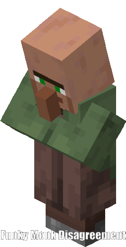 Funky Monk Man Meme featuring a Minecraft Villager looking up, with 'Disagreement' text. A popular meme sticker.