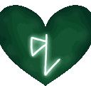 A stylized green heart or leaf shape, known as Furors Chalice, with a pointed bottom and two lobes.