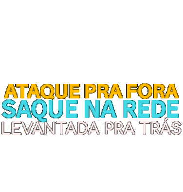 Animated sticker featuring common Futevolei (Footvolley) terms like 'Ataque Pra Fora', 'Saque Na Rede', and 'Levantada Pra Trás'.