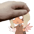 A Gacha Club character with pink hair and wings enjoys a head pat, performing a cute petpet wiggle.