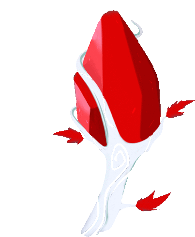 a drawing of a red object with leaves on it