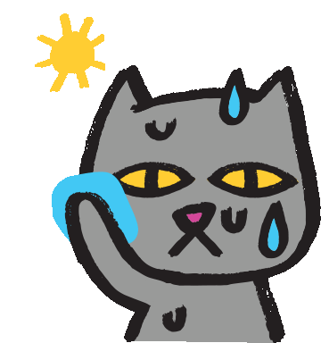 Gaiathegraycat, the adorable gray cat, animatedly shows she's feeling hot and sweating, expressing discomfort from the heat.