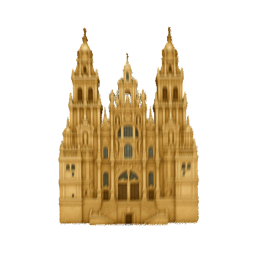 an illustration of a large building with stairs and a tower