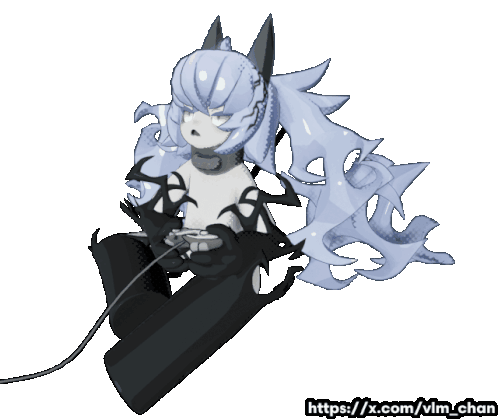 VLM-chan, an anime character, is intensely focused on playing a video game with a controller, showcasing a dedicated gamer mood.
