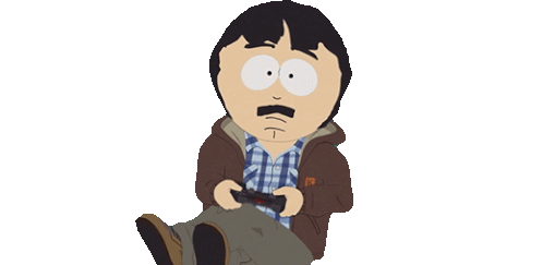 Randy Marsh from South Park intensely playing video games, looking focused and perhaps a bit stressed.