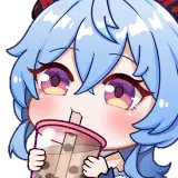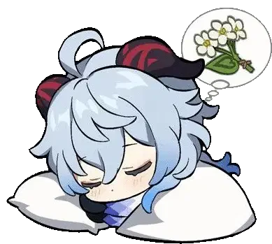 An adorable animated sticker featuring Ganyu from Genshin Impact with a donut placed on her head.