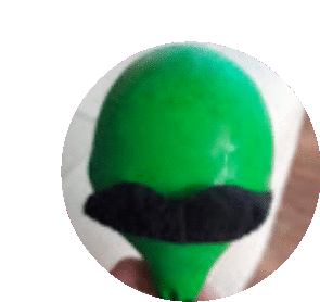 a person is holding a green balloon with a mustache on it