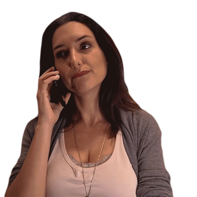 a woman talking on a cell phone while wearing a grey cardigan