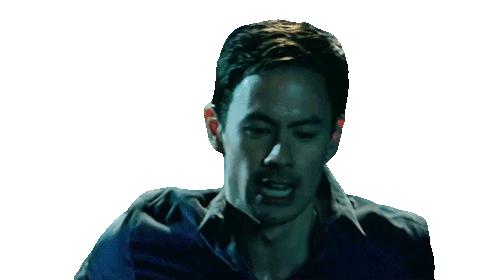 Kekoa Shaw, portrayed by George Young, gasps with wide eyes and an open mouth, showing intense distress or shock.