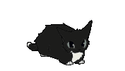 An adorable animated black cat with striking white markings on its chest and paws, depicted in a playful dancing or walking motion.