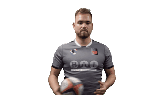 Gauke, a rugby player from Feanster RC, holds a rugby ball, showcasing his sport skills.