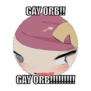 Animated sticker featuring Madeline Kobayashi's face as a 'Gay Orb', rotating with changing expressions and hair colors.