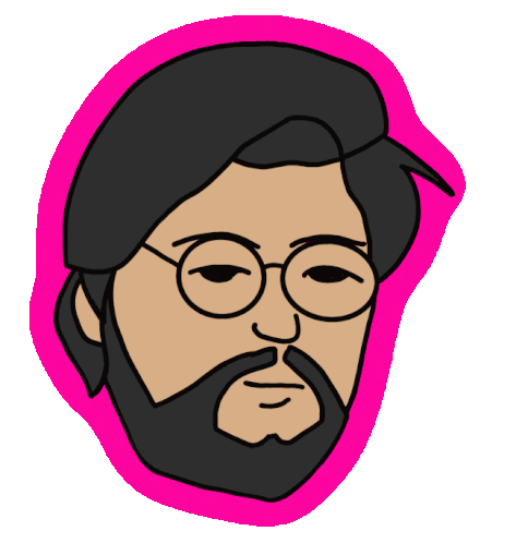 Cartoon man with beard and glasses, Gekko Yogekko, in a pink outline, perfect for Twitch emotes.