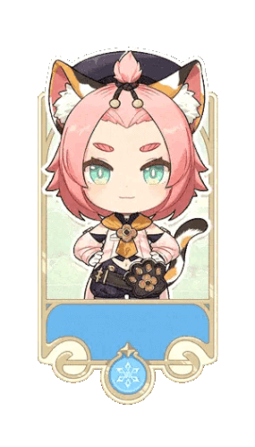 a girl with pink hair and cat ears is holding a cat 's paw .
