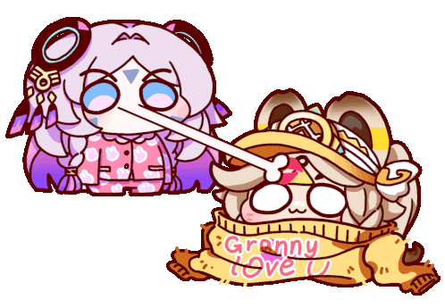 Animated sticker of Genshin Impact's Granny Itztli (Citlali) with a scarf saying 'granny love u'.