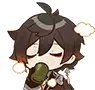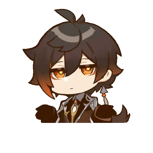 Zhongli from Genshin Impact, also known as Morax or Rex Lapis, receives an adorable head pat from a cat's paw in this sticker by miraenbee.