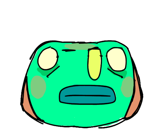 Geoffrey Frog, a green blob-like creature with a brown belly and yellow eye, depicted as an animated sticker.