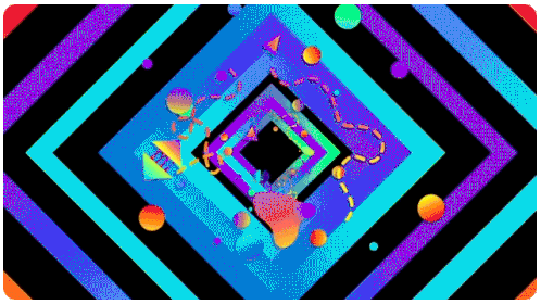 a colorful optical illusion with a black and blue striped background