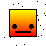 A vibrant, gradient-colored Geometry Dash cube spinning vertically against a minimalist dotted background.