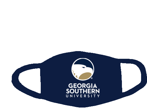 A dark blue face mask is displayed, featuring the Georgia Southern University logo, which includes an eagle head and the university name.