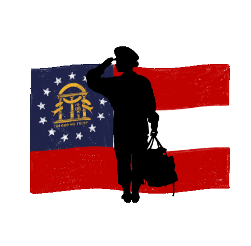 A powerful sticker advocating for Georgia's veterans' freedom to vote, featuring a saluting soldier against the state flag.