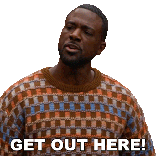 Calvin Payne from House of Payne, wearing a plaid sweater, emphatically says 'Get Out Here!' with a surprised expression.