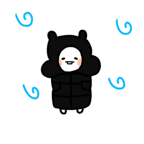 A cute, round character in a black puffer jacket shivers from the cold, with a snot bubble and blue swirls.