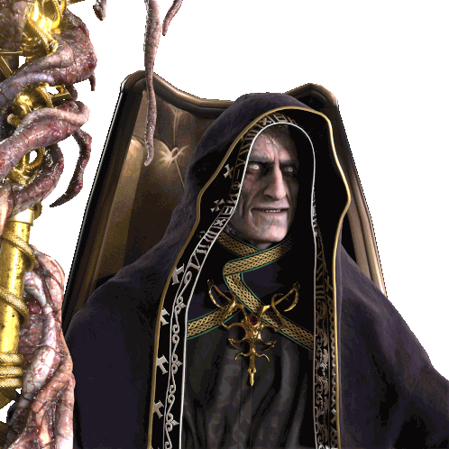 a man in a hooded robe has a necklace with a cross on it that says ' ii ' on it