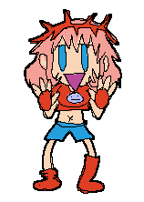Gimmiko Hapoten, a pink-haired pixel art girl from the roguelike game by Jerrod Sorelli, animated.