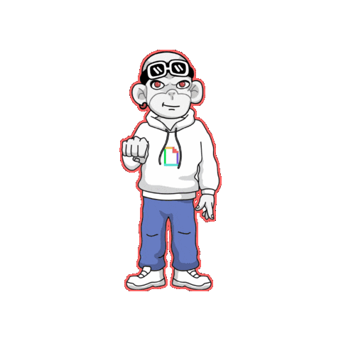a cartoon of a monkey wearing a white hoodie and blue pants