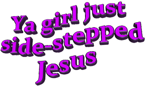 A vibrant purple text sticker displaying the phrase 'Ya girl just side-stepped Jesus' with a playful, bold design.